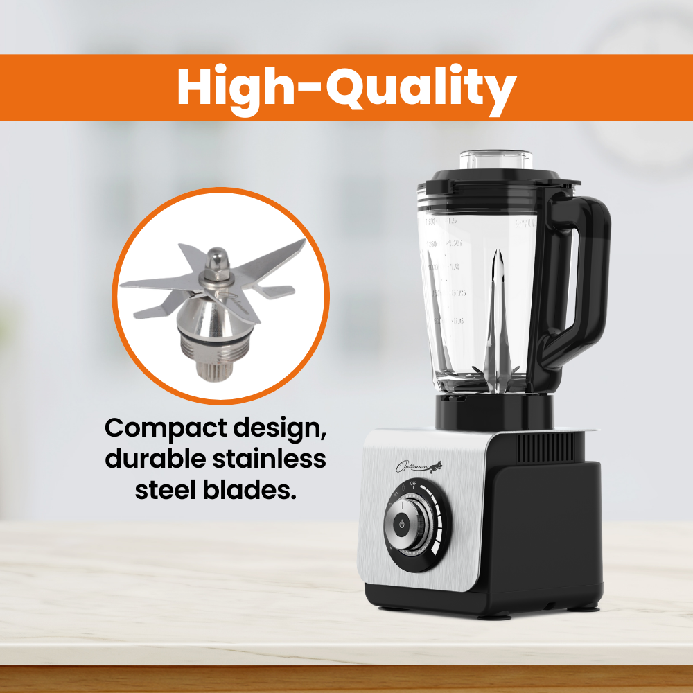 Stainless Steel BladesTransform your blending adventures with the Optimum 9400 Essential’s revolutionary six stainless steel blades. These state-of-the-art blades ensure velvety-smooth textures, effortlessly pulverizing ingredients with their ultra-sharp edges to elevate every blend. Crafted with precision, the Optimum 9400 Essential's glass jug boasts six stainless steel blades, while the stainless steel grinder jug and BPA-free plastic jug feature four stainless steel blades. This innovative blade design ensures thorough blending, consistently delivering silky-smooth textures with every use. | |